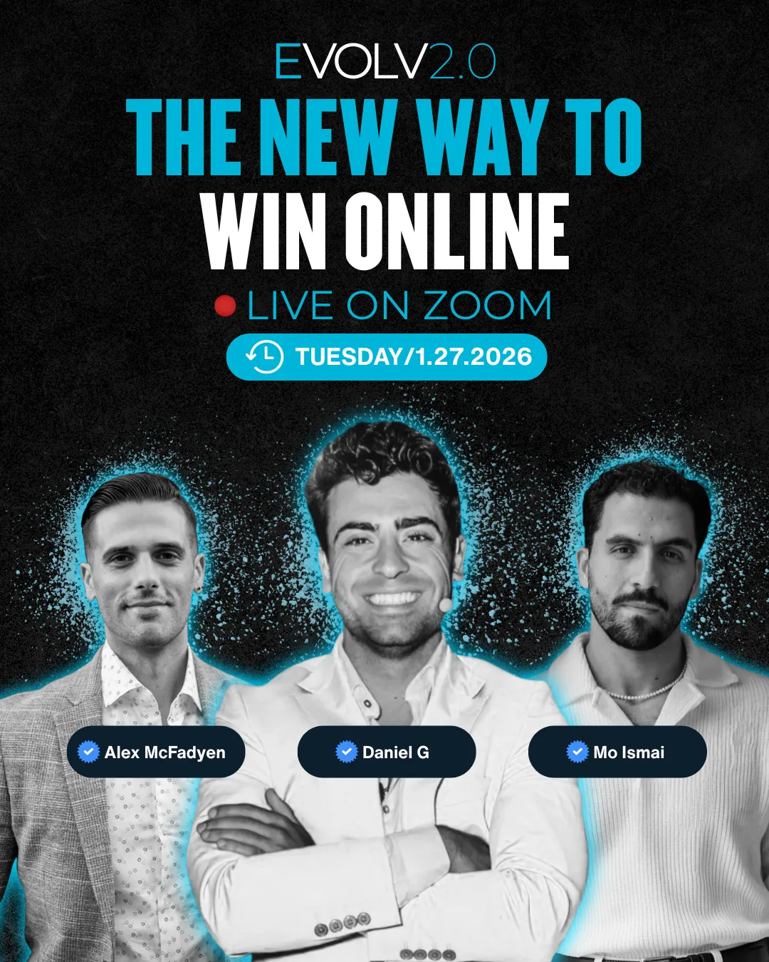 Join Daniel G (Sales Genius), Mo Ismail (Marketing Savant), and Alex McFadyen (Money Expert & Host of EVOLV) for a no-BS 60-minute training on how to become THE name everyone knows in your market.